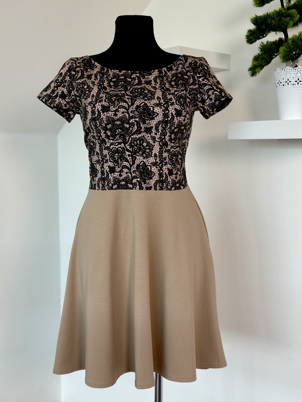 Míry vel. S-M: prsa cca 95cm, pas cca 75cm, boky cca 100 cm, ideální na výšku cca 170cm - délka nad kolena