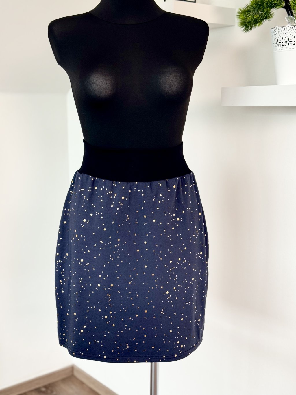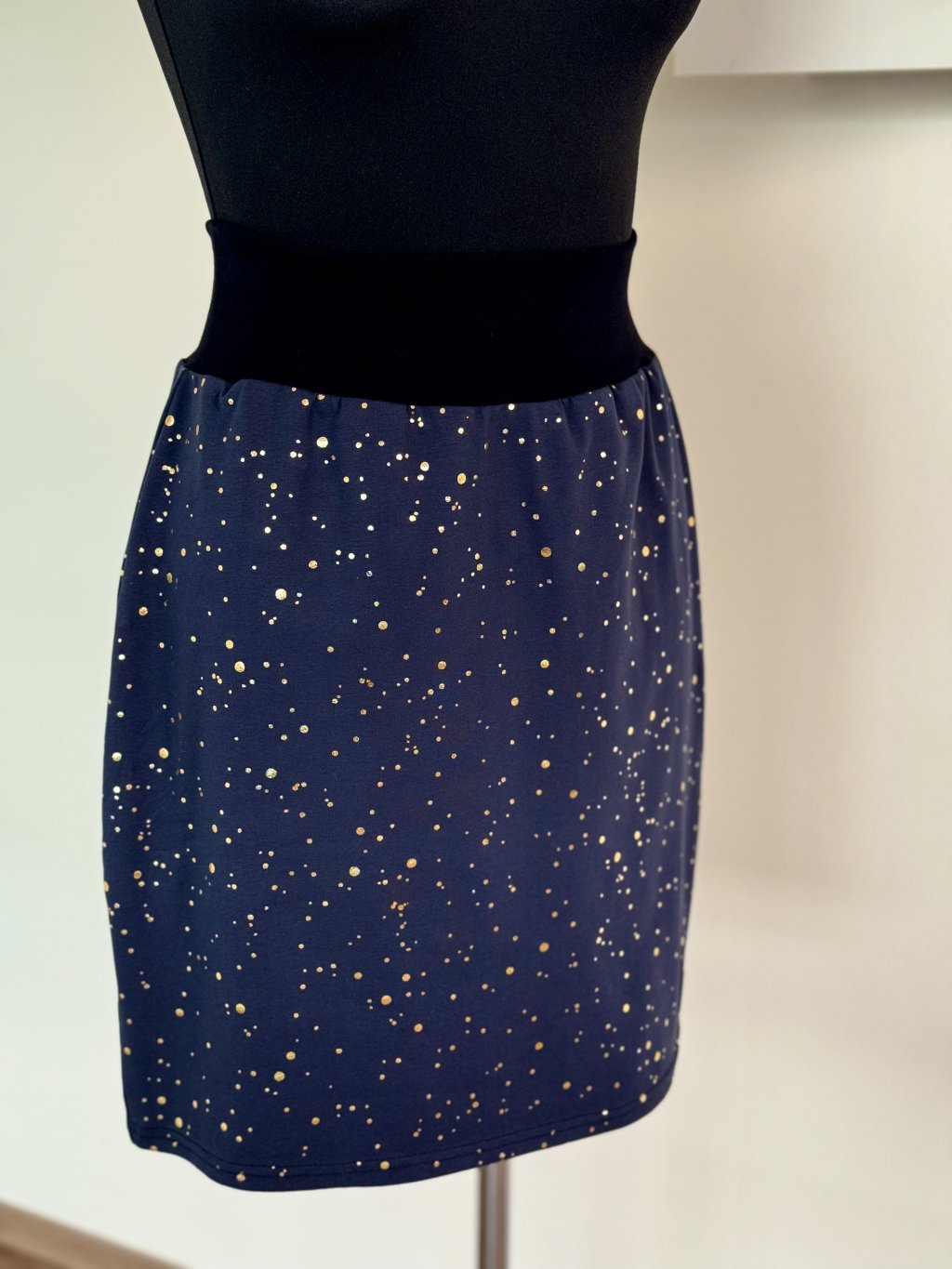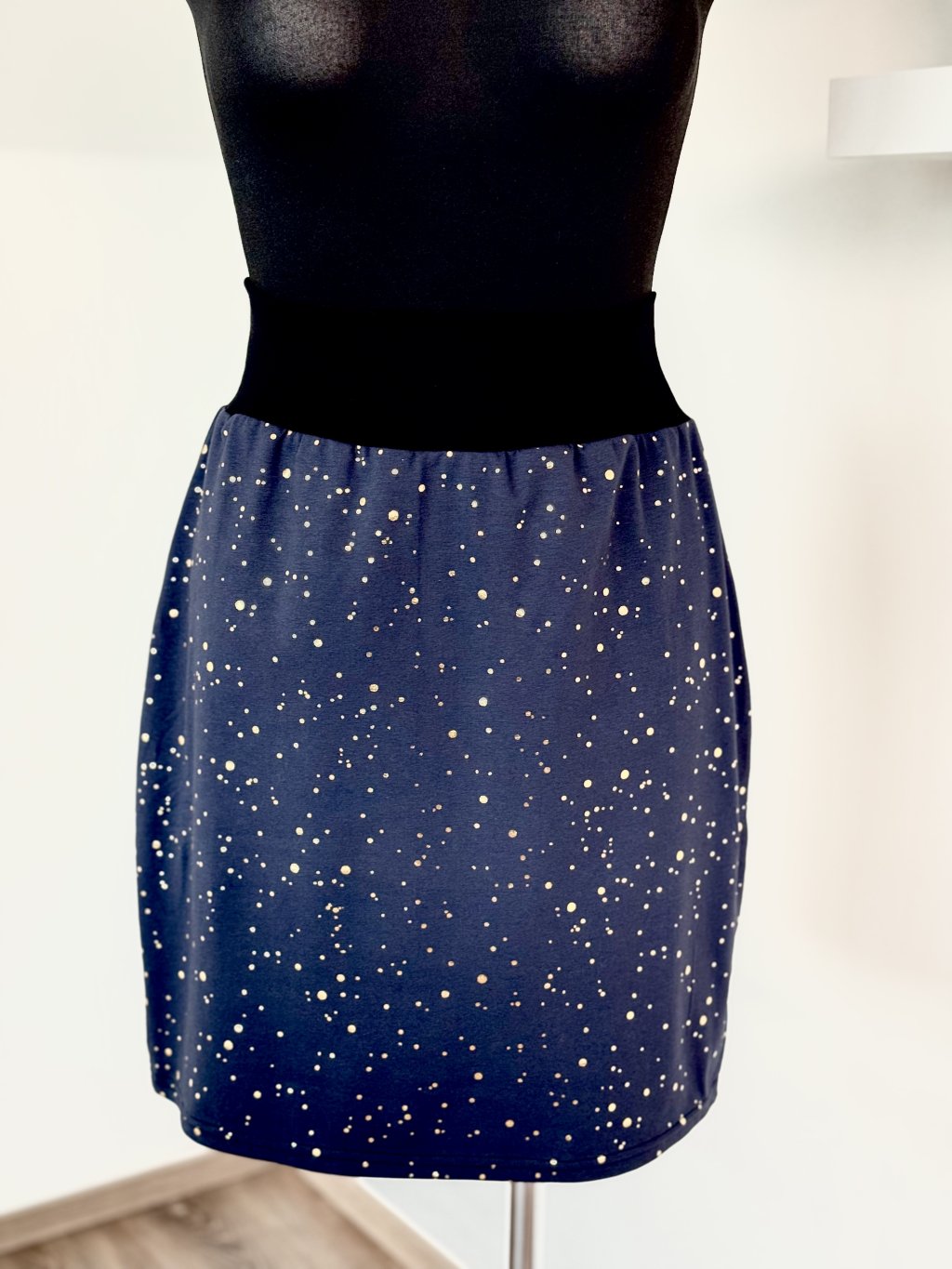 Sukně úplet Námořní modrá se zlatou